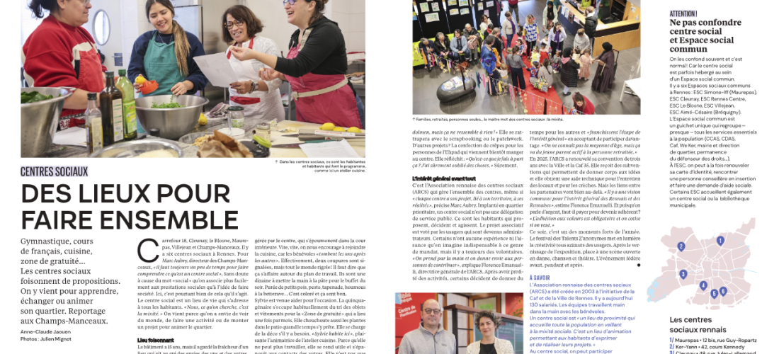 Nous avons le plaisir de partager avec vous un article paru dans Ici Rennes (édition d’avril) en mettant à l’honneur les centres sociaux.